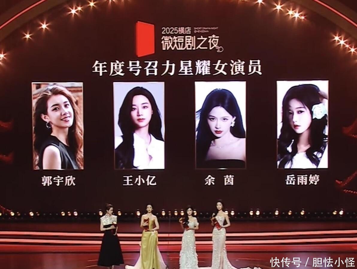 最近文荣奖在横店举行的“微短剧之夜”,半个短剧圈的女演员都来了,包括郭宇欣、王小艺、余茵、岳雨婷等。在精致的妆容和华丽的礼服下,个个容光焕发,美出新高度。